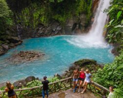 Embark on a 6-kilometer (3.7-mile) guided hike through lush tropical trails. Along the way, you will discover the breathtaking Río Celeste Waterfall, bubbling volcanic hot springs (borbollones), and the “Teñideros,” the exact point where the river changes color. After the hike, we’ll enjoy a delicious traditional Costa Rican lunch. If weather conditions allow, the tour concludes with a refreshing dip in the river’s cool, revitalizing waters—perfect for soothing the body and mind after your trek.